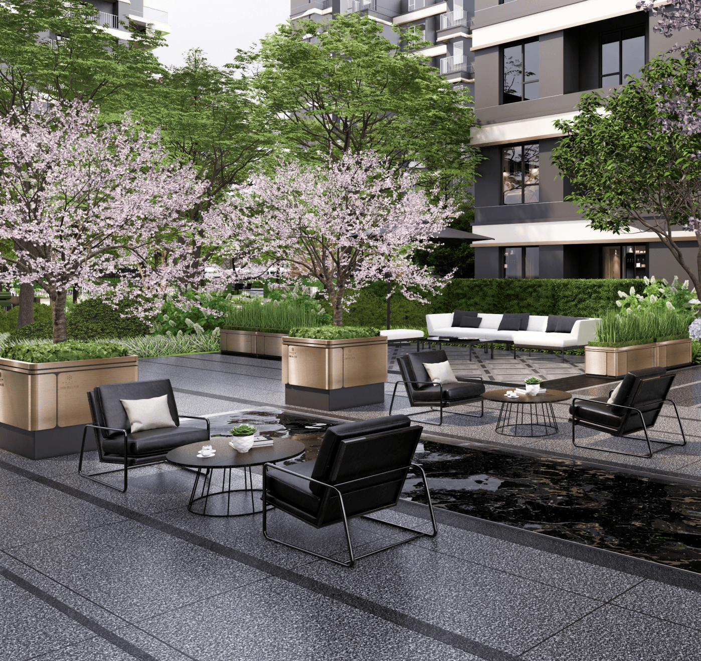 以“六合四时” 从题花圃天井为精髓所正在,归家好像微度假,融合古今设想元素,感触感染繁荣活力。